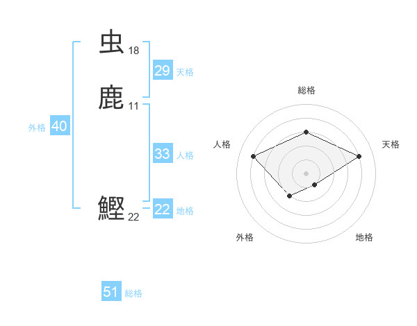 虫鹿 鰹さんの総格は51画の3点!