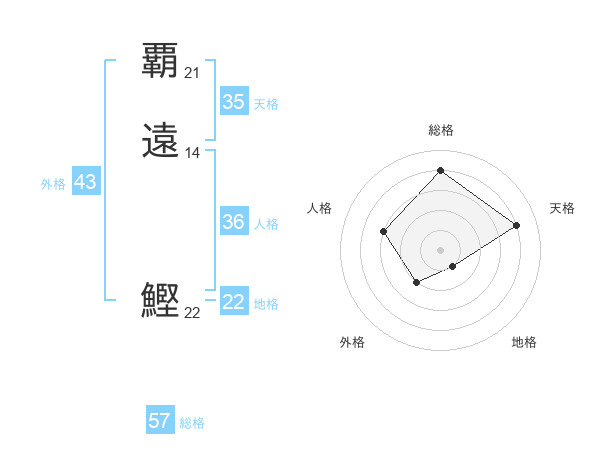 覇遠 鰹さんの総格は57画の4点!