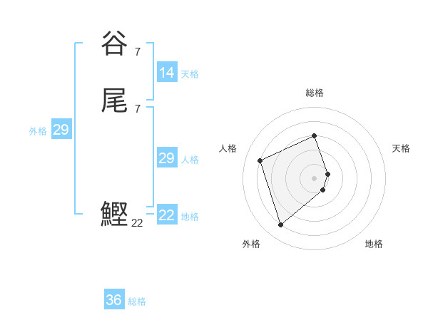 谷尾 鰹さんの地格は22画の1点!