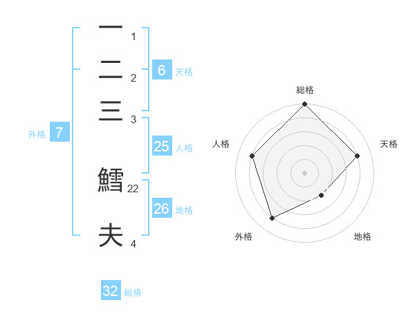 一二三 鱈夫さんを姓名の画数から五運を鑑定