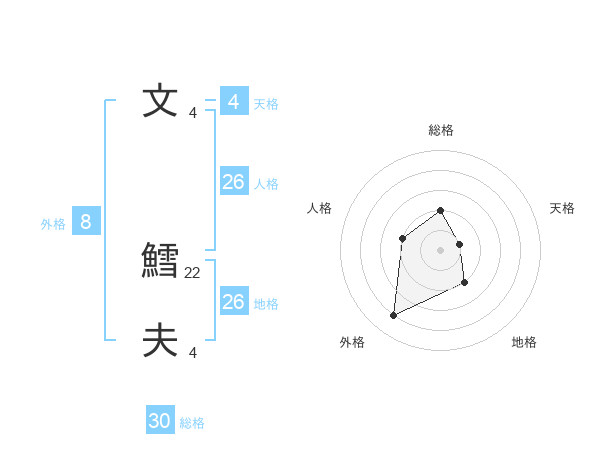 文 鱈夫さんの総格は30画の2点!