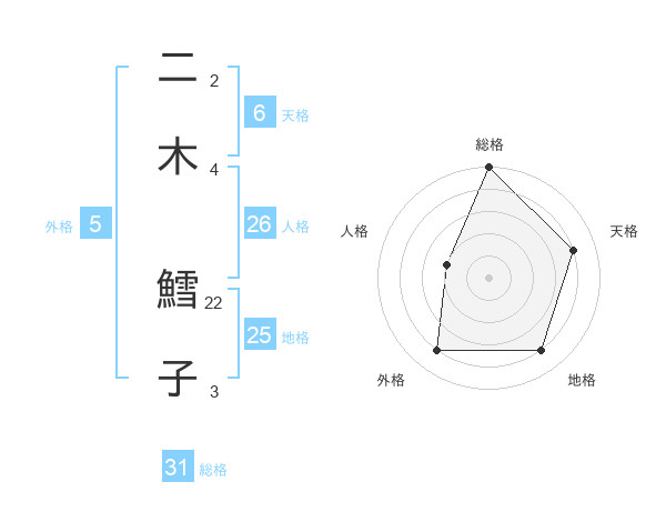 二木 鱈子さんを姓名の画数から五運を鑑定