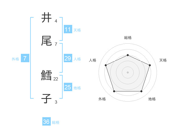 井尾 鱈子さんの外格は7画の4点!
