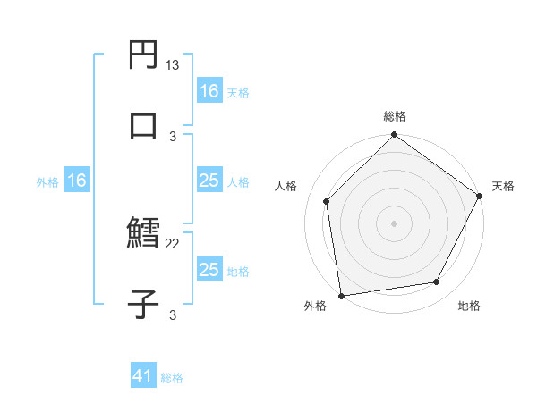 円口 鱈子さんを姓名の画数から五運を鑑定