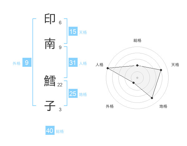 印南 鱈子さんの総格は40画の2点!