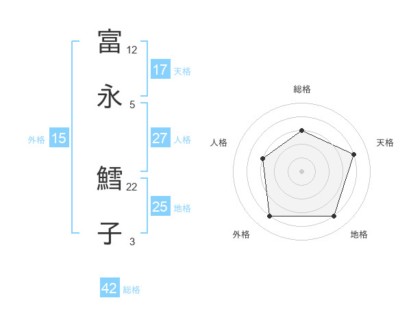富永 鱈子さんの総格は42画の3点!