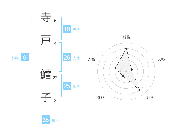 寺戸 鱈子さんの総格は35画の4点!