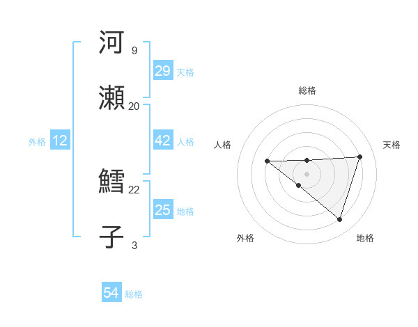 河瀬 鱈子さんの外格は12画の1点!