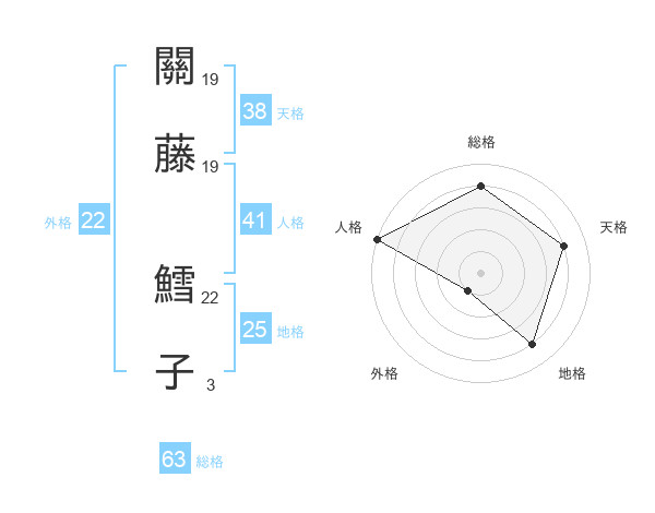 關藤 鱈子さんの天格は38画の4点!