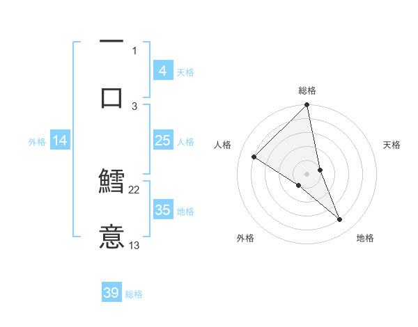 一口 鱈意さんの総格は39画の5点!