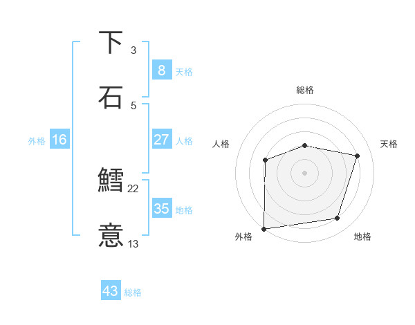 下石 鱈意さんを姓名の画数から五運を鑑定