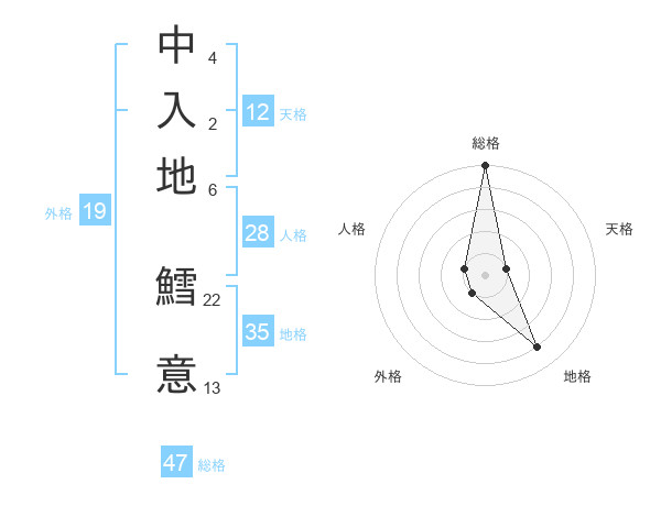 中入地 鱈意さんを姓名の画数から五運を鑑定