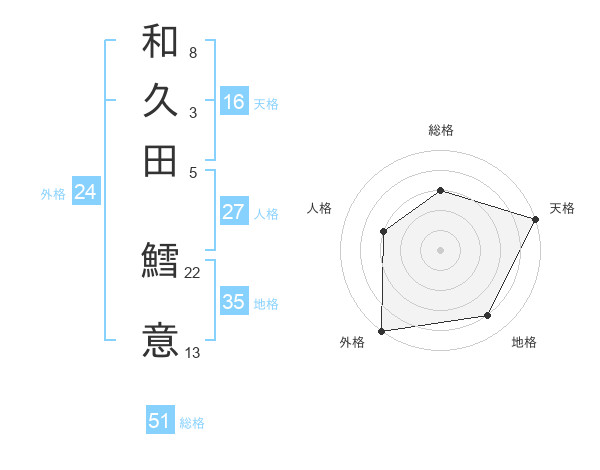 和久田 鱈意さんを姓名の画数から五運を鑑定