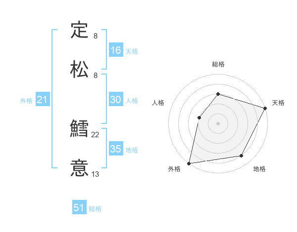定松 鱈意さんの総格は51画の3点!