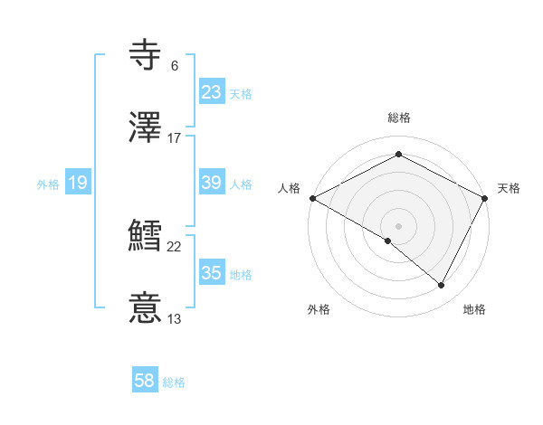 寺澤 鱈意さんを姓名の画数から五運を鑑定
