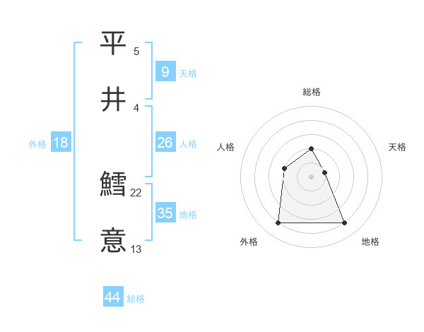 平井 鱈意さんの総格は44画の2点!
