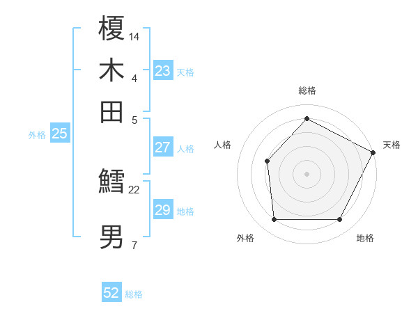 榎木田 鱈男さんを姓名の画数から五運を鑑定