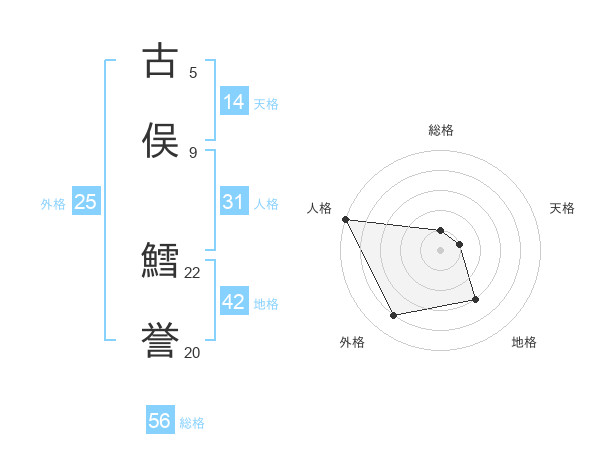 古俣 鱈誉さんを姓名の画数から五運を鑑定