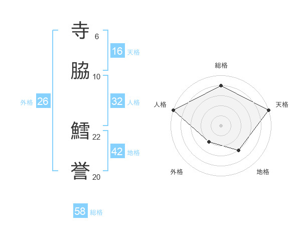 寺脇 鱈誉さんを姓名の画数から五運を鑑定