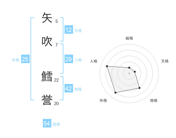 矢吹 鱈誉さんを姓名の画数から五運を鑑定