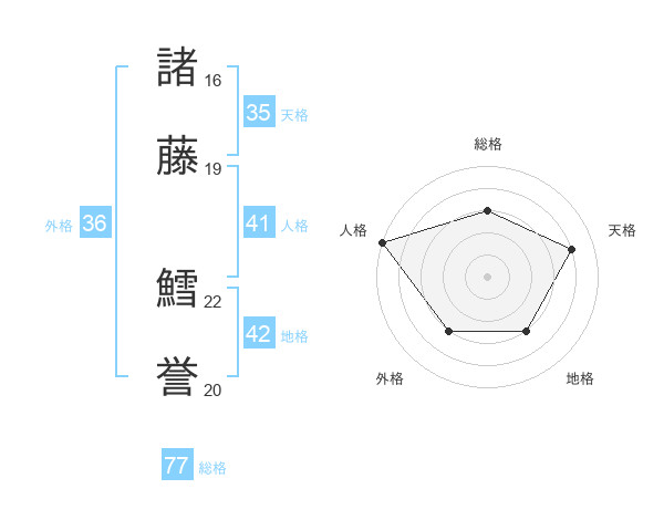 諸藤 鱈誉さんを姓名の画数から五運を鑑定