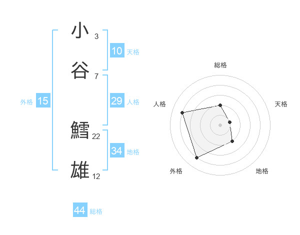 小谷 鱈雄さんを姓名の画数から五運を鑑定