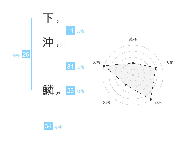 下沖 鱗さんの総格は34画の2点!