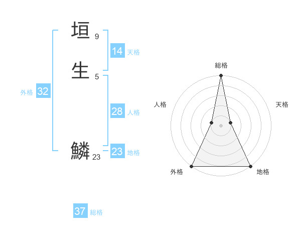 垣生 鱗さんの地格は23画の5点!