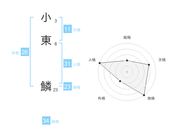 小東 鱗さんの天格は11画の4点!
