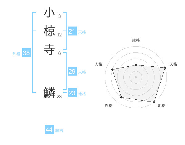 小椋寺 鱗さんの天格は21画の5点!