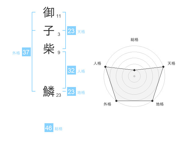 御子柴 鱗さんを姓名の画数から五運を鑑定