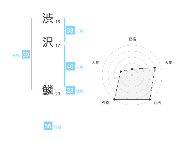 渋沢 鱗さんの外格は39画の5点!