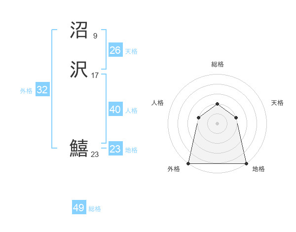 沼沢 鱚さんを姓名の画数から五運を鑑定