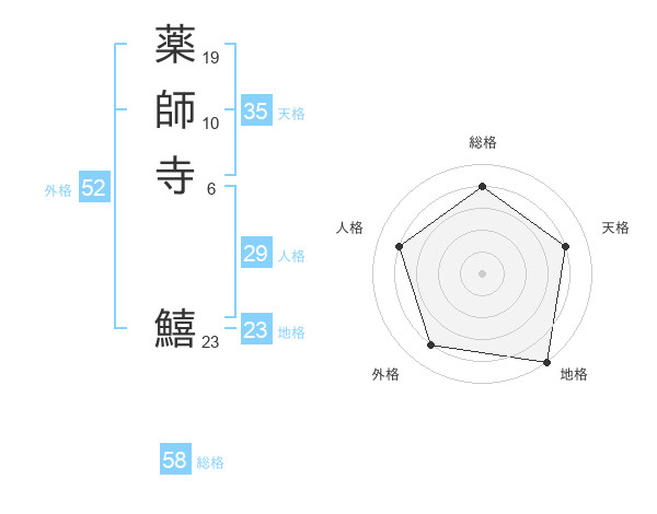 薬師寺 鱚さんの外格は52画の4点!