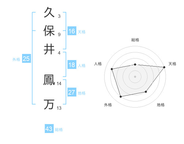 久保井 鳳万さんを姓名の画数から五運を鑑定
