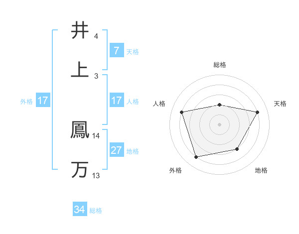 井上 鳳万さんの総格は34画の2点!