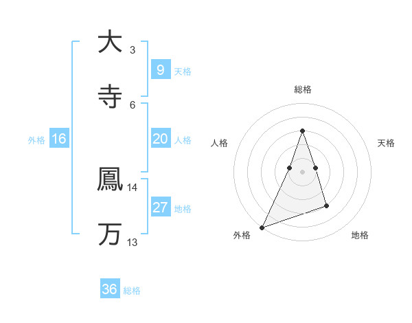 大寺 鳳万さんの総格は36画の3点!