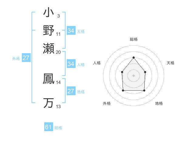 小野瀬 鳳万さんの総格は61画の3点!