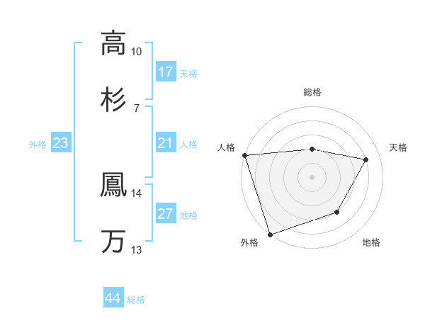 高杉 鳳万さんの総格は44画の2点!