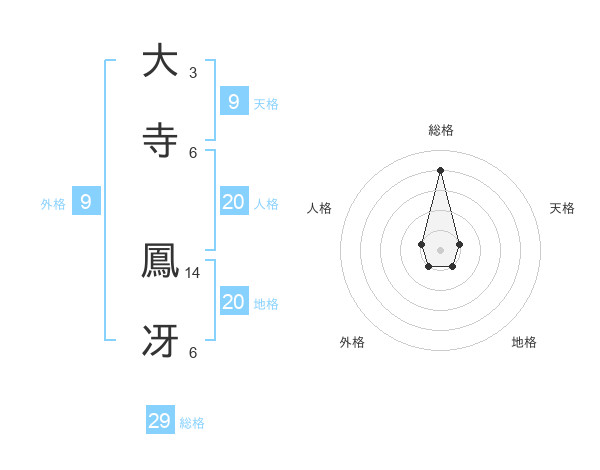 大寺 鳳冴さんの総格は29画の4点!