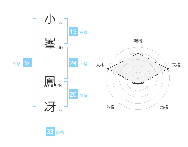 小峯 鳳冴さんの総格は33画の4点!
