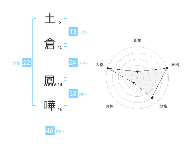 土倉 鳳嘩さんの外格は22画の1点!