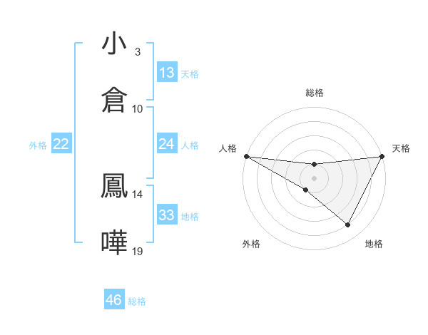 小倉 鳳嘩さんの天格は13画の5点!
