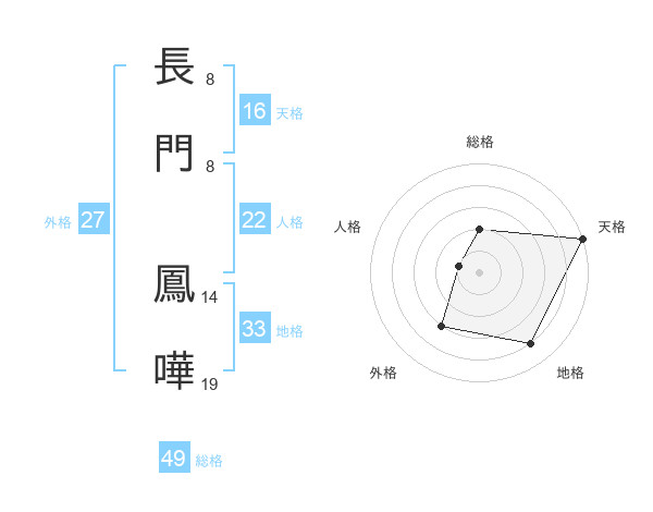 長門 鳳嘩さんを姓名の画数から五運を鑑定