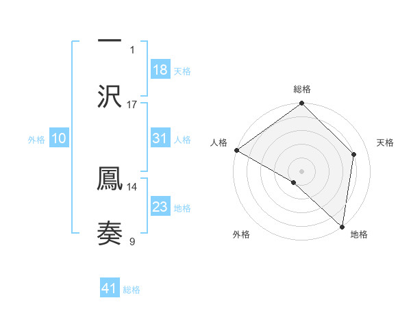 一沢 鳳奏さんの総格は41画の5点!