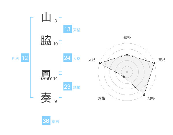 山脇 鳳奏さんを姓名の画数から五運を鑑定