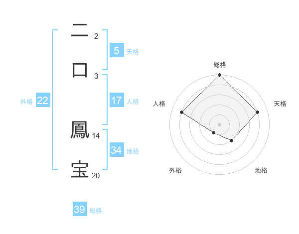 二口 鳳宝さんの総格は39画の5点!