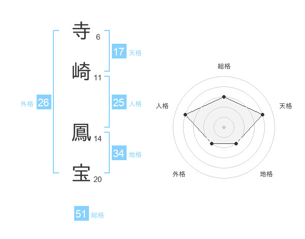 寺崎 鳳宝さんの総格は51画の3点!