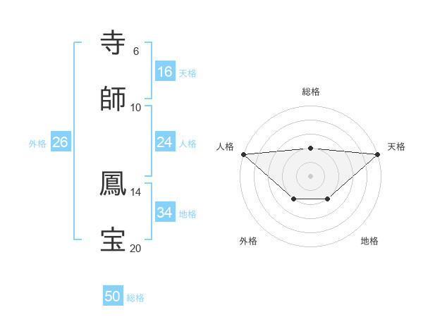 寺師 鳳宝さんの総格は50画の2点!