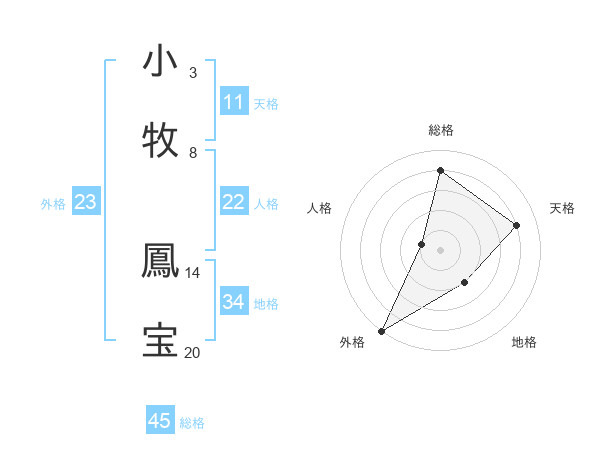 小牧 鳳宝さんの総格は45画の4点!